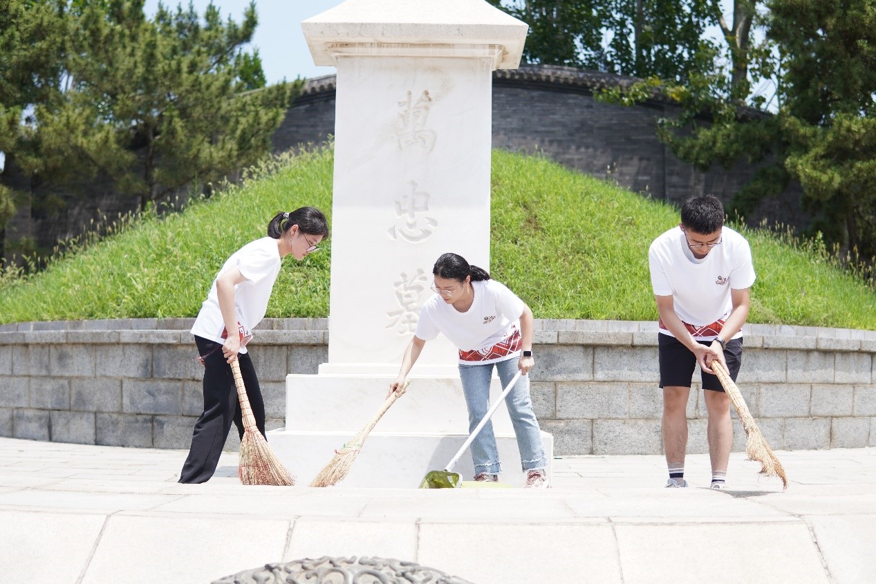 (图为实践团成员在万忠墓扫墓)