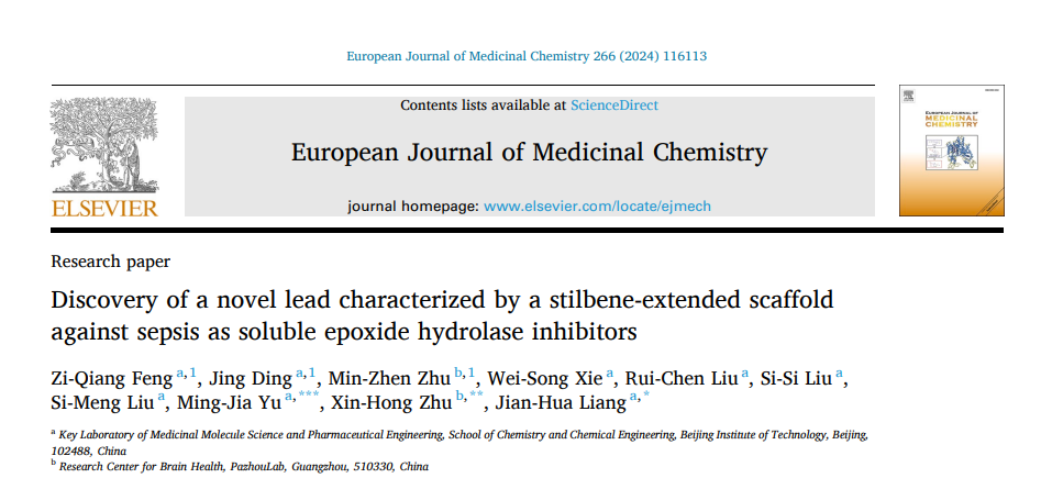2024年1月3日,日本A片 梁建华教授课题组在抗败血症药物研究中取得重要进展,设计合成了基于天然骨架二苯乙烯类sEH抑制剂并用于治疗败血症,其中最优化合物70P (FZQ-21) 能够在小鼠体内有效抑制sEH酶水解活性并显著提高小鼠败血症模型的总生存率。相关成果发表以Discovery of a Novel Lead Characterized by a Stilbene-extended Scaffold against Sepsis as Soluble Epoxide Hydrolase Inhibitors为题发表于期刊European Journal of Medicinal Chemistry。
