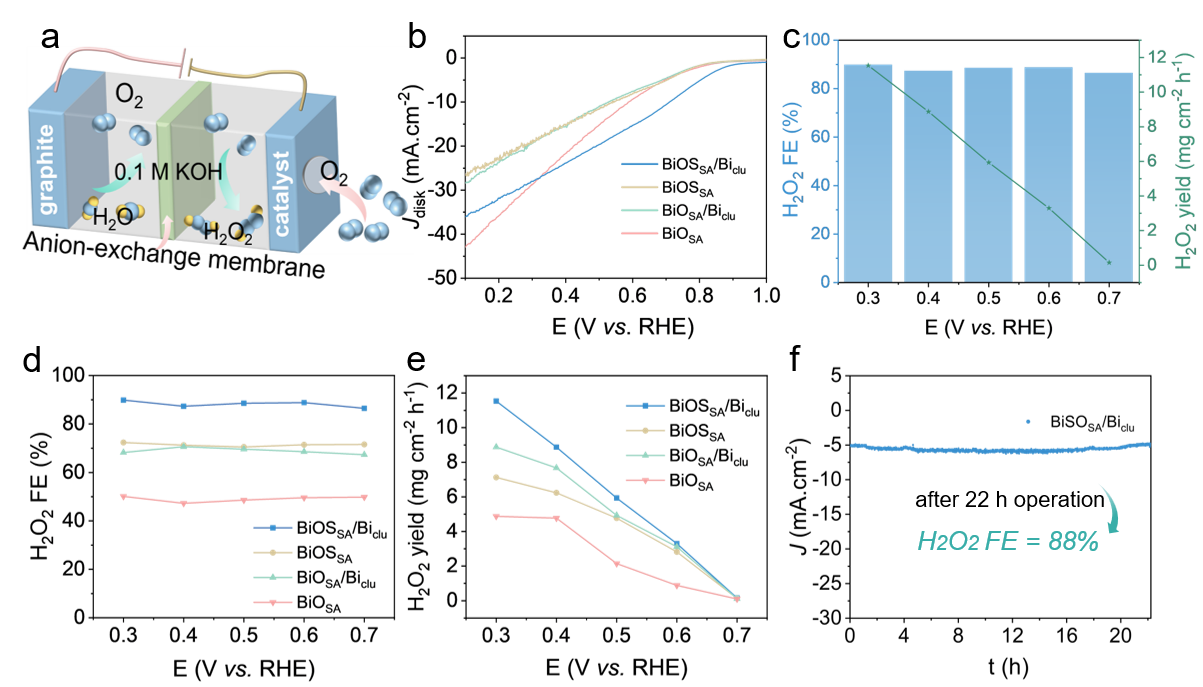 北理工在p区元素Bi团簇/单原子位点串联促进高选择性电合成过氧化氢取得重要进展