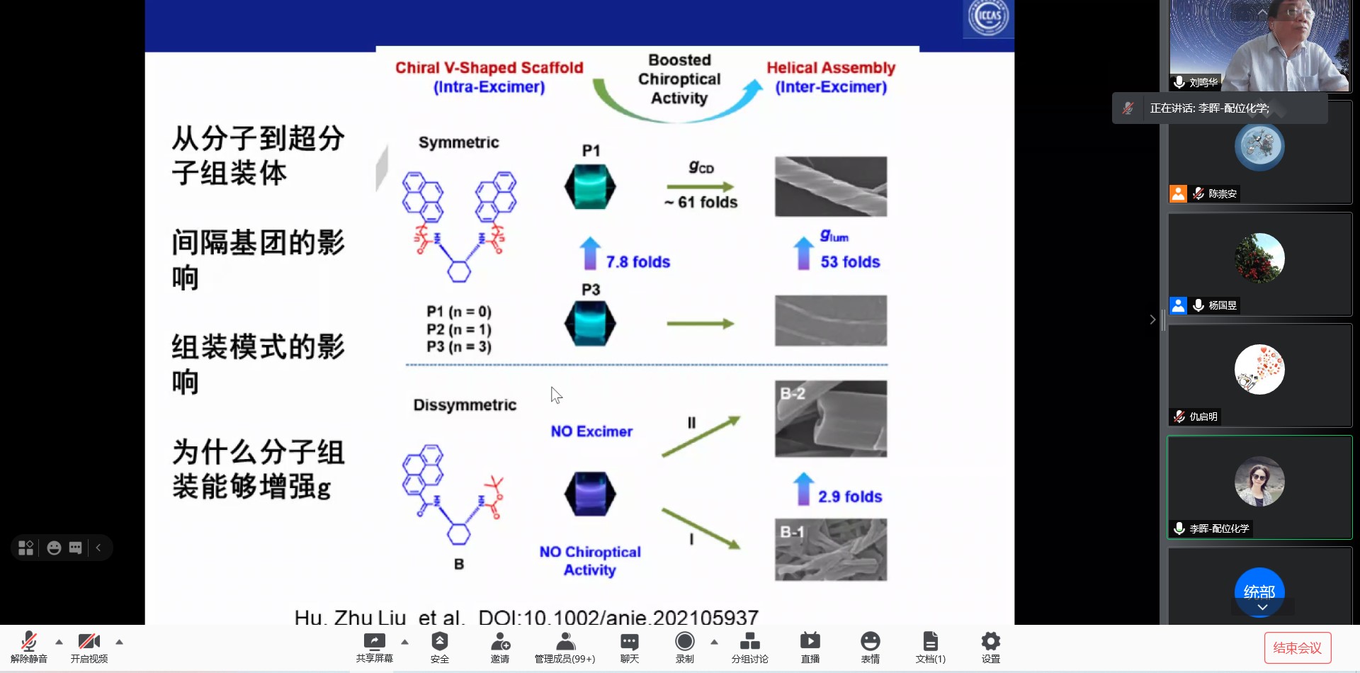 应日本A片 邀请,中科院化学所刘鸣华教授于2021年7月2日8:40做客北理工“百家大讲堂”,为我院广大师生带来题为“超分子手性自组装与圆偏振发光材料”的精彩学术报告。本次报告在腾讯会议平台线上进行,由杨国昱老师主持,近百名化院师生参加了报告。
