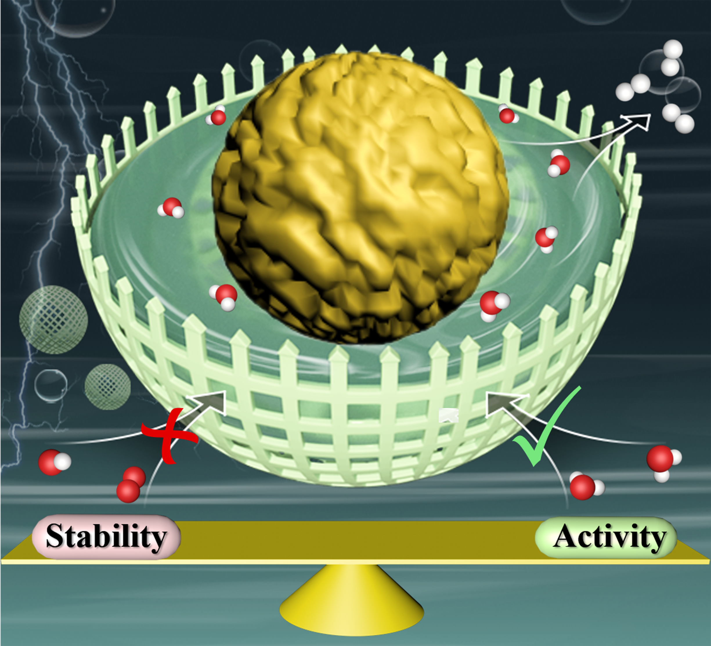 开发高稳定性、高活性以及低成本的电催化剂是催化科学技术领域的永恒追求。近年来,非贵金属催化剂已经成为了催化领域的研究热点。然而,这类催化剂普遍存在长期稳定性和高催化活性之间的权衡问题,这是因为优化后的高催化活性位点往往更易受到复杂催化反应环境因素的影响。例如氧气、水蒸气、臭氧、酸性/碱性反应介质等因素都可能通过化学作用毒化催化活性位点,导致催化剂表面发生重构并破坏其几何/电子结构,造成催化剂失活。因此,寻找一种有效的策略来打破非贵金属催化剂所面临的活性-稳定性权衡问题是一个巨大的挑战。