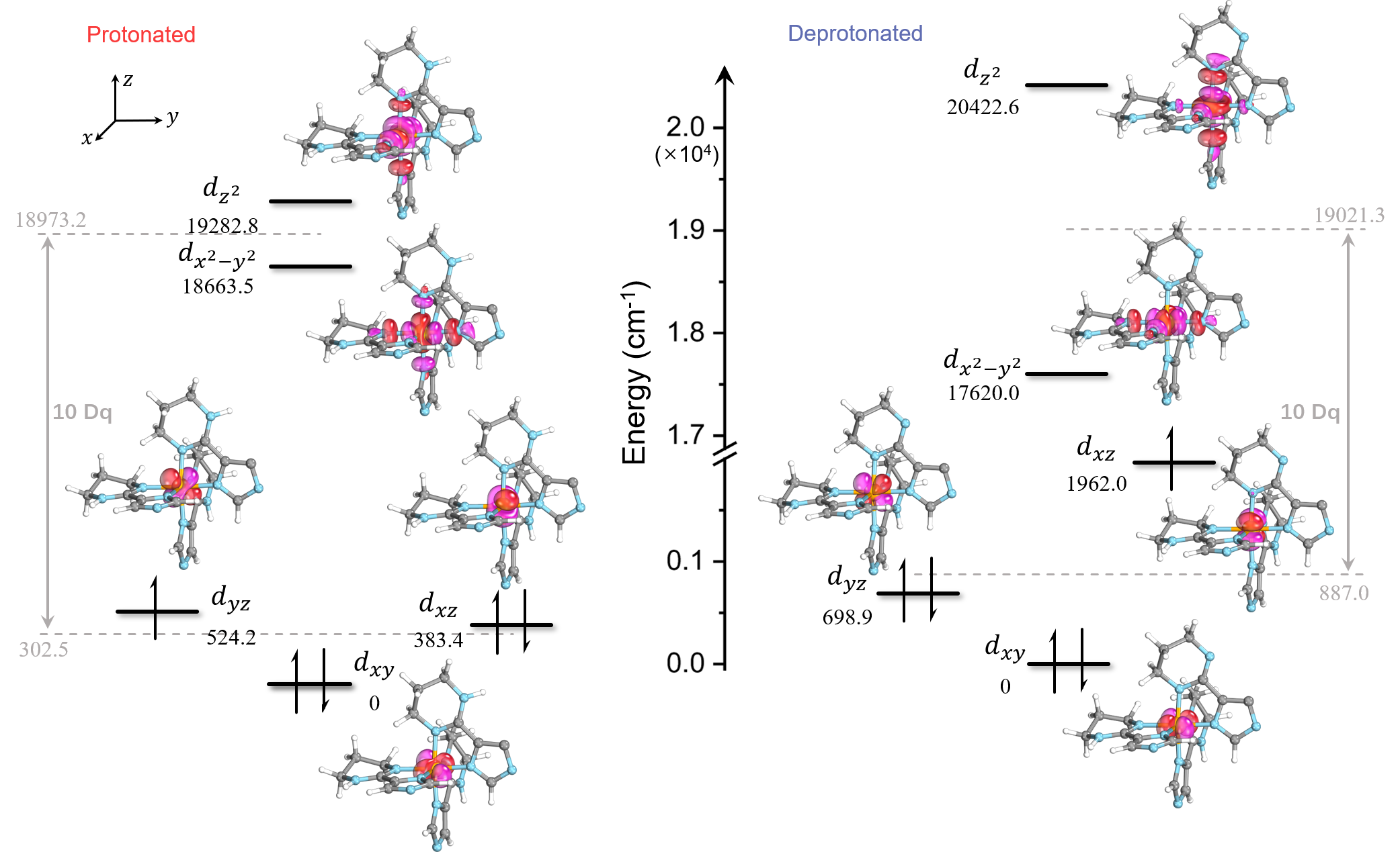 图4. 质子化和去质子化MOCs的配体场分析