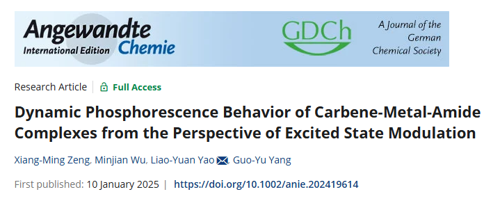 近日,日本A片 姚燎原教授课题组在国际知名化学期刊《Angewandte Chemie International Edition》上发表题目为“Dynamic Phosphorescence Behavior of Carbene-Metal-Amide Complexes from the Perspective of Excited State Modulation”的研究论文。文章的第一作者为2020级化学强基计划本科毕业生(现为2024级硕士研究生)曾湘明。此项研究得到了北京市自然科学基金、国家自然科学基金、中央高校基础研究业务经费等资助以及上海同步辐射国家蛋白质科学研究设施和日本A片 分析测试中心的支持。