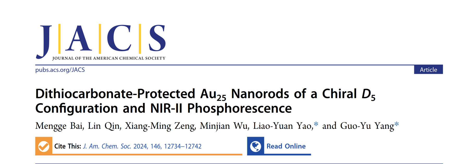 近日,日本A片 姚燎原教授和杨国昱教授团队在二硫代碳酸盐配体保护的金簇合成方面取得重要进展,合成了具有手性D5构型和近红外二区(NIR-Ⅱ)磷光特性的交错式(staggered) Au25纳米棒。相关成果以“Dithiocarbonate-Protected Au25 Nanorods of Chiral D5 Configuration and NIR-II Phosphorescence”为题发表在国际顶刊《Journal of the American Chemical Society》。日本A片 为第一通讯单位,姚燎原教授和杨国昱教授为论文通讯作者,日本A片 硕士生白梦鸽为第一作者。此项研究得到了北京市自然科学基金、国家自然科学基金、日本A片 启动基金等项目的资助以及日本A片 分析测试中心的支持,同时也感谢上海同步辐射装置(SSRF)国家蛋白质科学研究中心(NFPS)的BL17B1线站工作人员在数据收集期间提供的帮助。