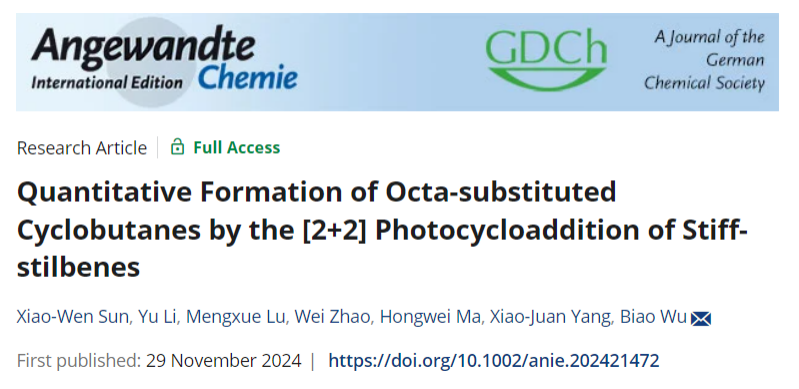 北理工课题组在刚性二苯乙烯[2+2]环加成定量合成八取代环丁烷的研究中取得新进展
