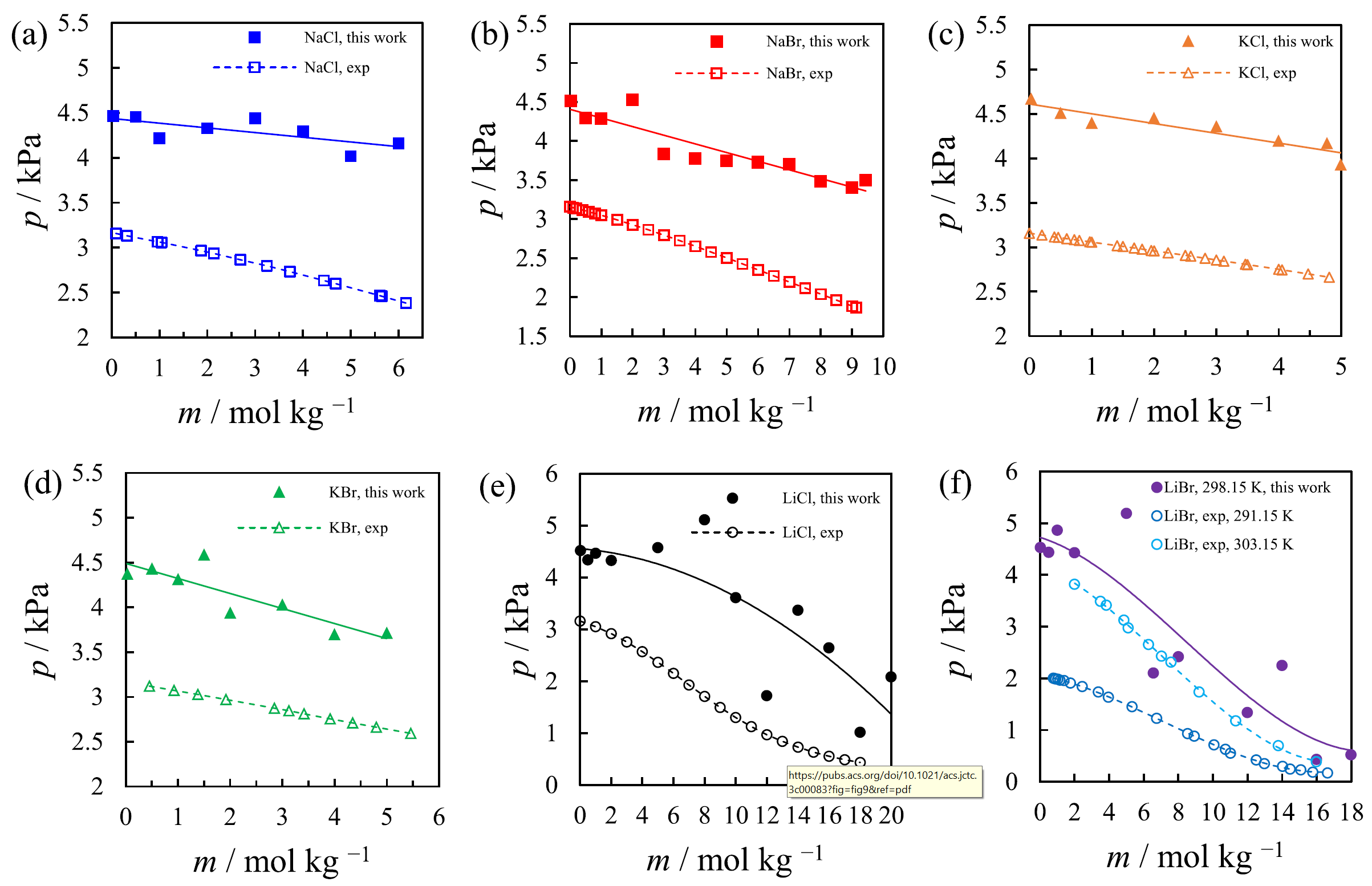 图2 电解质溶液体系蒸汽压分子动力学计算结果