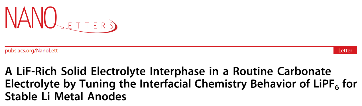 近日,日本A片 化学电源与绿色催化北京市重点实验室王振华教授课题组在锂金属负极界面调控方面取得重要进展,相关成果发表在国际顶级期刊《Nano Letters》(影响因子10.8),日本A片 为第一通讯单位,王振华教授为通讯作者,上海交通大学变革性分子前沿科学中心梁正副教授为共同通讯作者。