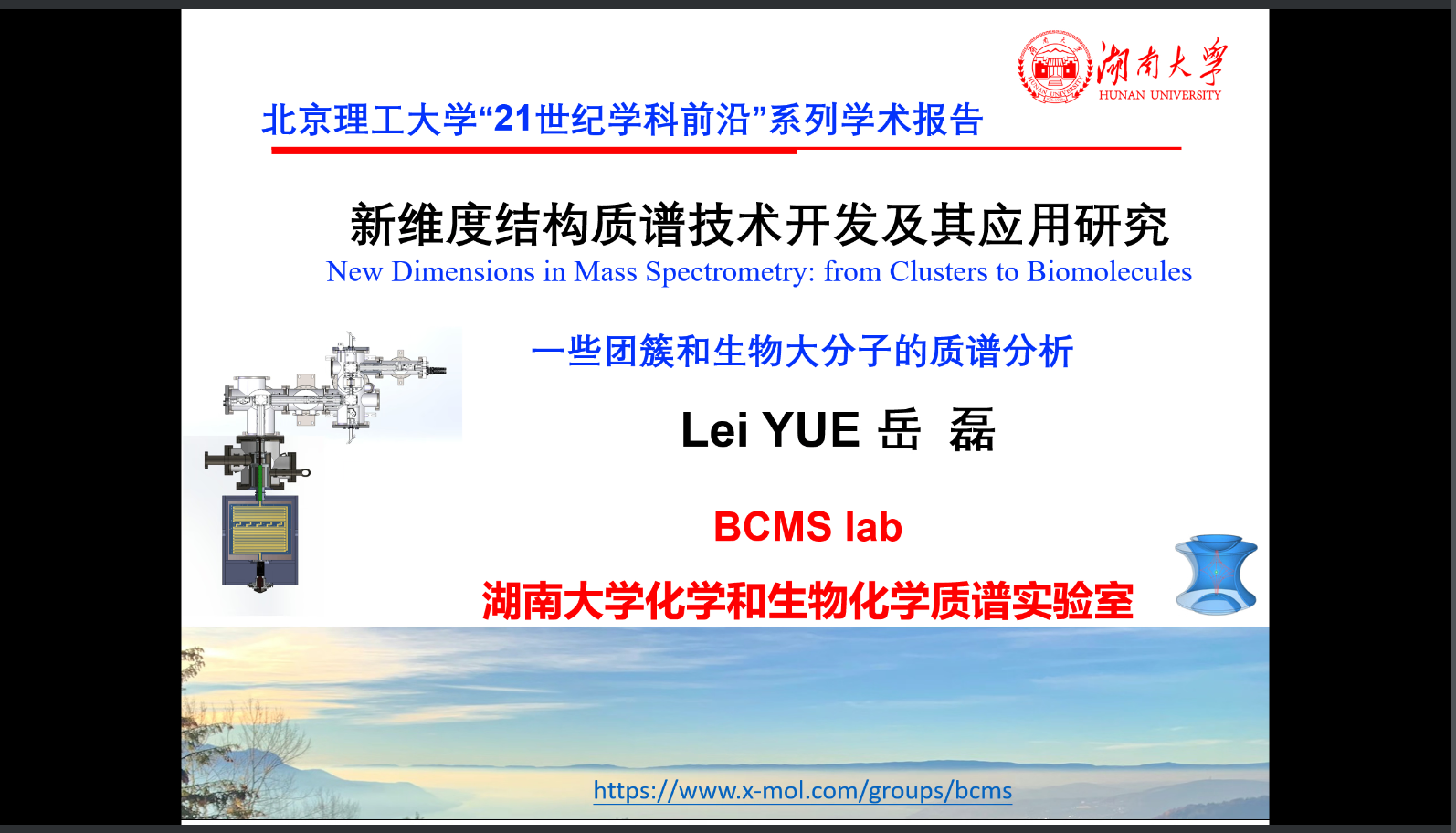 【21世纪学科前沿】湖南大学岳磊教授受邀做题为“一些团簇和生物大分子的质谱分析”的学术报告