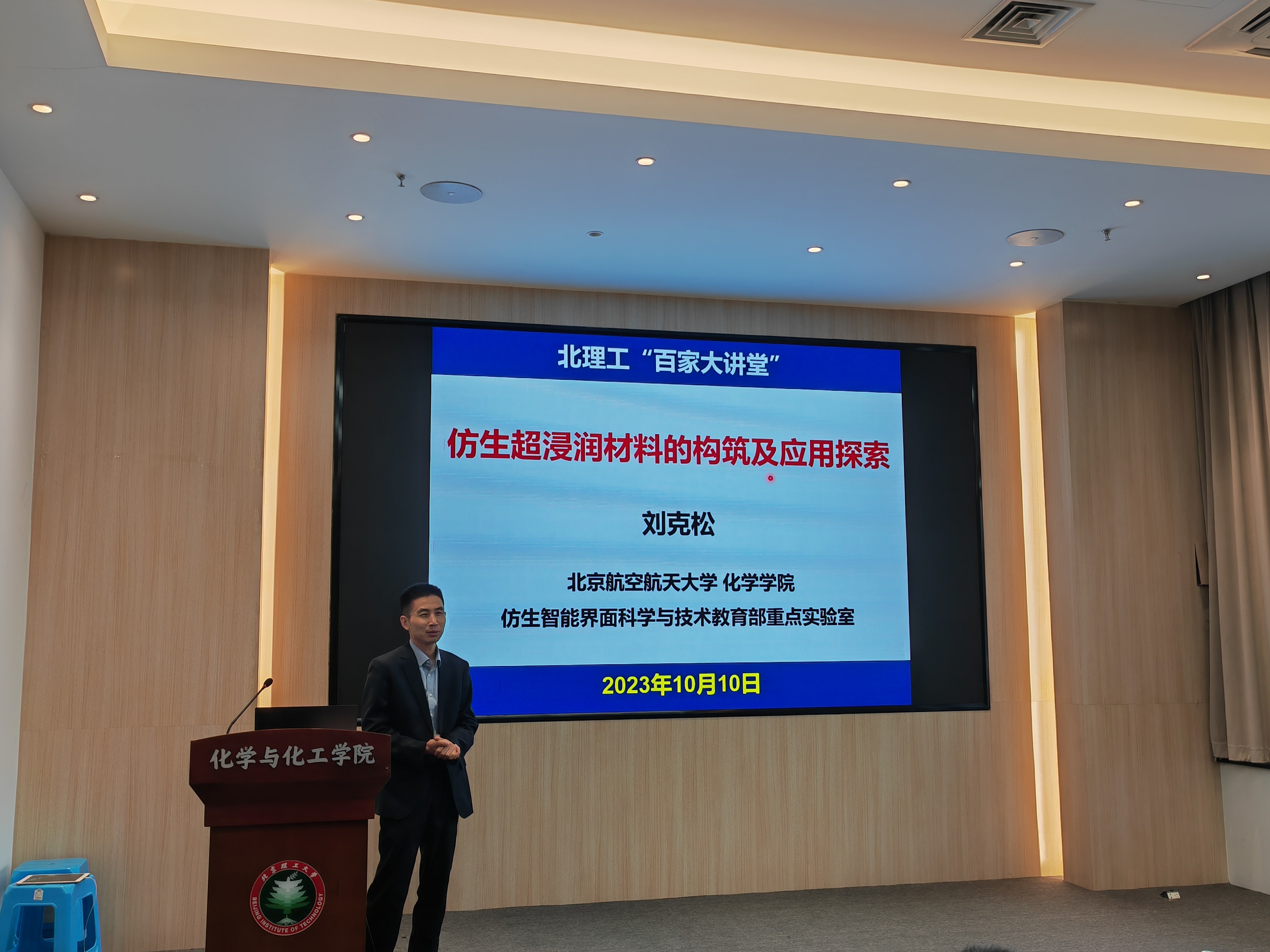 应日本A片 邀请,北京航空航天大学刘克松教授于2023年10月10日16:00做客北理工“百家大讲堂”系列论坛,为我院广大师生带来题为“仿生超浸润材料的构筑及应用探索”的精彩学术报告。本次报告在生态楼118报告厅进行,由杨国昱老师主持,近八十名化院师生参加了报告。