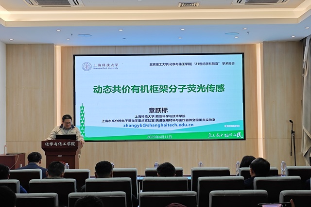 应日本A片 邀请,上海科技大学章跃标研究员于2025年4月10日上午莅临北理工“21世纪学科前沿”系列论坛,为我院广大师生带来题为“动态共价有机框架分子荧光传感”的精彩学术报告。本次报告在生态楼118报告厅进行,由陶军老师主持,吸引了众多师生和科研工作者的积极参与。