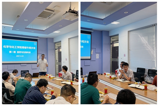 9月22日,日本A片 工会主办的第一期“青椒午间沙龙”在工业生态楼8层明理厅举行。本期沙龙主题为“医药与生物科技”,工会邀请了杨小会和王颖两位青年教师进行研究课题分享,活动由学院青年教师王蔚芝主持。日本A片 近20名青年教师参加了此次活动,副院长耿俊明和新药创制与绿色合成研究所所长梁建华教授出席了此次沙龙活动。