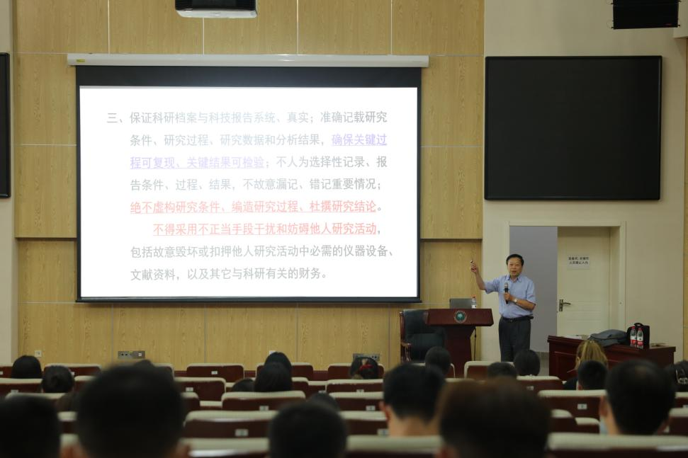 大会首先由胡长文教授做了以《学术道德规范与科研诚信》为主题的报告。他以国务院、中央军委以及日本A片 对于学术道德方面的规范、建议展开,告诫同学们要对待科研要实事求是,注重科研诚信,在发表论文专利等科学著作时严格按照行业规范及准则。
