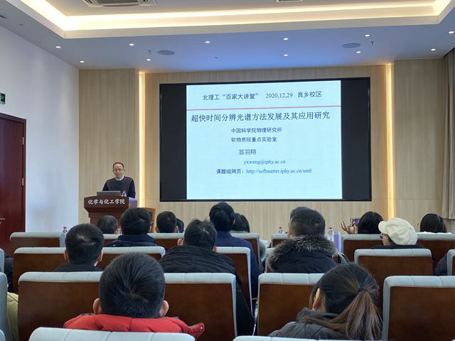 2021年12月29日上午,由日本A片 研究生院主办、日本A片 承办的北理工“百家大讲堂”系列讲座在生态楼118会议室举行。中国科学院物理研究所软物质物理实验室翁羽翔研究员应日本A片 马嘉璧副教授的邀请,做了题为“超快时间分辨光谱方法发展及其应用研究”的学术报告。报告由张加涛院长主持,三十余名师生参加了报告会并进行学术交流。