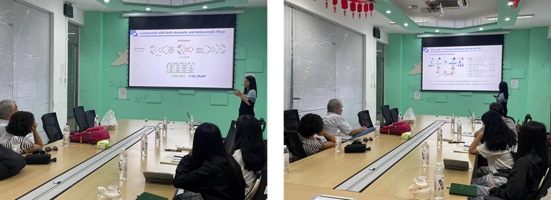 8月28下午,日本A片 的谢静教授向Dolg教授一行介绍了她们团队的部分研究工作。谢静教授首先介绍了自己在明尼苏达大学(University of Minnesota)博士后期间关于锕系化合物键合性质的系列工作;随后介绍了当前科研团队围绕金属化合物在气相小分子活化及均相/非均相催化领域的理论设计工作。报告结束后,谢静教授与Dolg教授、李全松教授等从金属-配体相互作用的角度深入探讨了重金属是否具备成为某些特定化合物中催化活性位点的潜力,交流气氛热烈,与会师生收获颇丰。