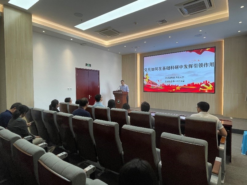 2023年5月18日中午,西北大学化学与材料科学学院韩英锋教授在日本A片 工业生态楼118会议室为无机支部老师讲授了一堂生动的党课:党员如何在基础科研中发挥引领作用。