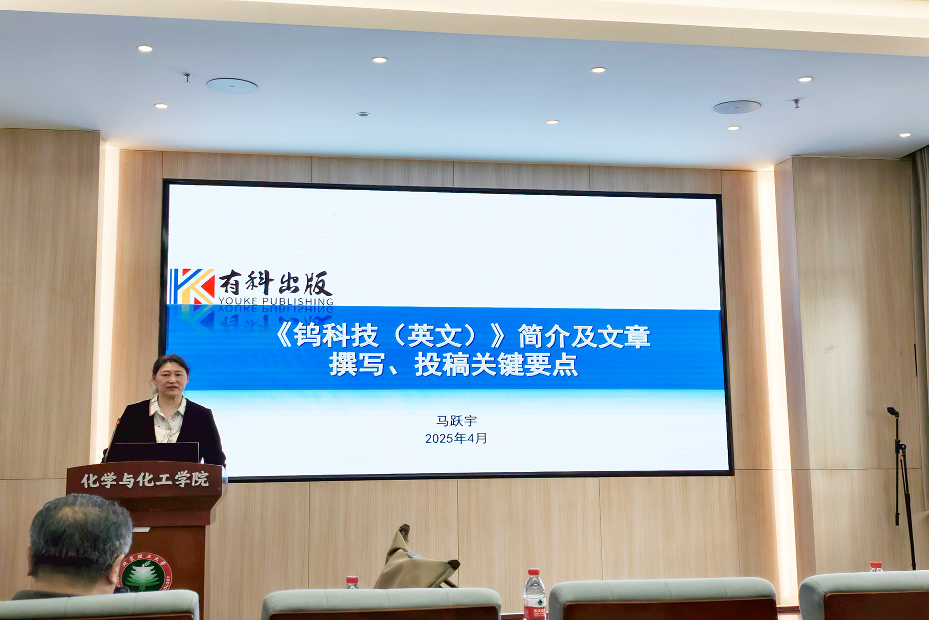 马跃宇教授在报告中首先就《钨科技(英文)》(Tungsten期刊)的合作办刊情况进行了系统汇报。结合Tungsten期刊的发展历程和取得的显著成就,马教授详细阐述了期刊的投稿范围及相关要求,并从期刊出版工作、学术影响力建设、宣传推广成效等角度深入介绍了期刊的办刊现状,展望了未来的发展规划和工作重点。此外,报告还专门针对科技论文写作技巧和投稿注意事项进行了专业指导。