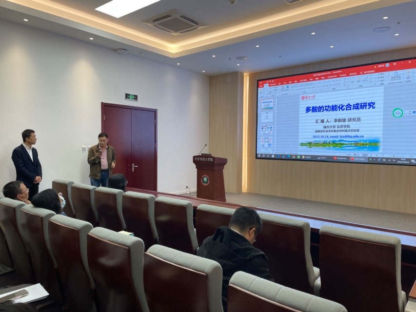 邀请,福州大学李新雄研究员于2023年10月24日10:00做客北理工“21世纪学科前沿”系列论坛,为我院广大师生带来题为“多酸的功能化合成研究”的精彩学术报告。本次报告在生态楼118会议室进行,由黄胜利老师主持,多名化院师生参加了报告。