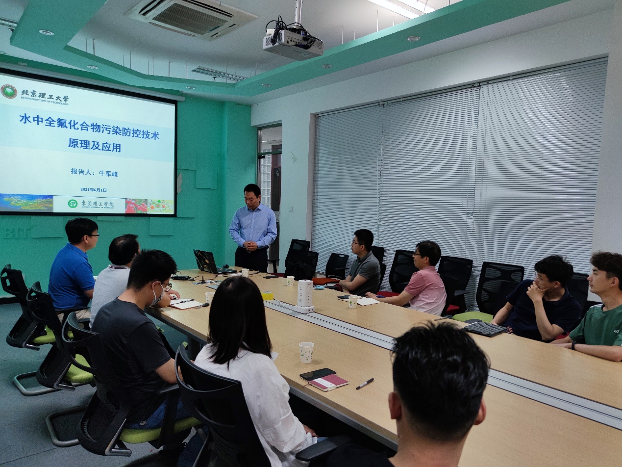 应徐熙焱特别研究员邀请,2021年6月1日上午,国家级领军人才牛军峰教授到访日本A片 ,作了题为“水中全氟化合物污染防控技术”的学术报告。黎汉生副院长等20余化院师生参加了报告,报告由徐熙焱老师主持。